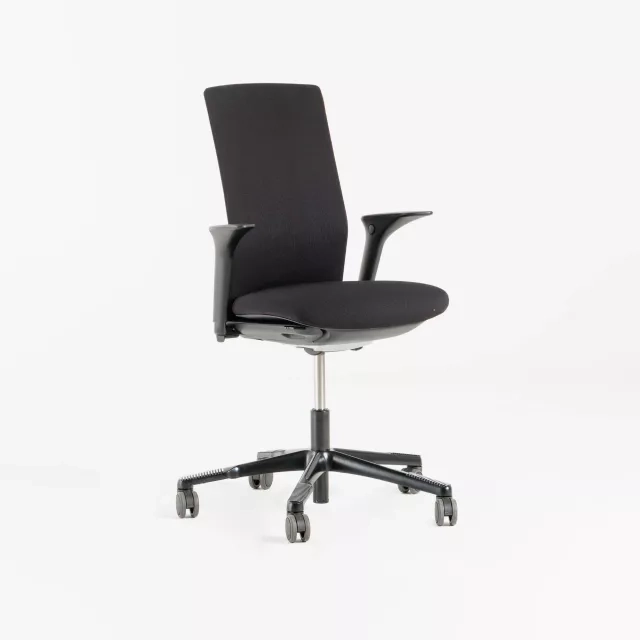 Kontorsstolen Futu från HÅG, modell 1020, är en ergonomisk arbetsstol formgiven av Marianne Støren Berg och Leif Isachsen. Sitsen i svart tyg kombineras med en svart meshrygg som ger god ventilation under längre arbetspass. Denna återbrukade HÅG Futu kontorsstol passar moderna arbetsplatser där komfort och driftssäker funktion är viktigt. Varje stol är genomgången av våra tekniker för trygg användning i vardagen.