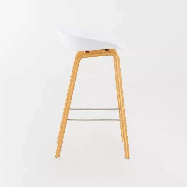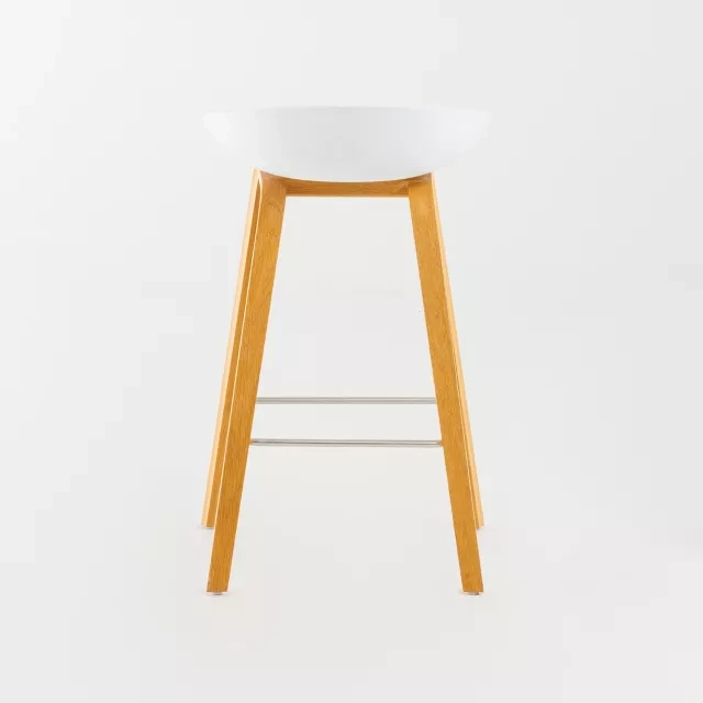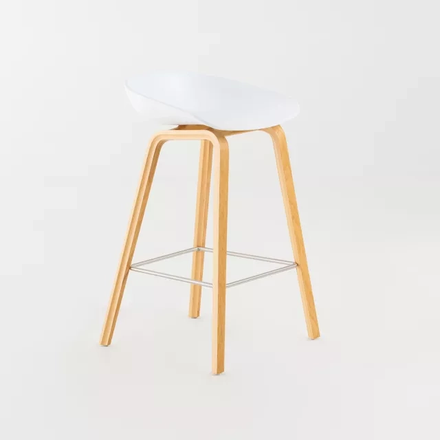 Barstolen AAS32 från HAY, formgiven av Hee Welling, förenar modern elegans med praktisk funktionalitet. Dess sits i vit polypropylen erbjuder hållbarhet samtidigt som den ger en stilren känsla till alla miljöer. Med ben i såpad massiv ek, är denna barstol inte bara snygg utan också stabil, vilket ger en robust grund för daglig användning i professionella sammanhang. Ett välplacerat fotstöd ökar komforten, vilket gör AAS32 till ett idealiskt val för personalrum, eventytor eller gemensamma utrymmen som eftersträvar en sofistikerad atmosfär.