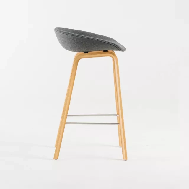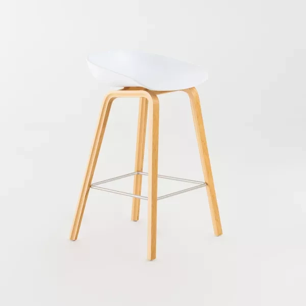 AAS32 from HAY suits café spaces, project tables, receptions and breakout areas. The solid oak frame provides stability for everyday use in professional environments. The upholstered seat supports comfort during both short and longer stays. The elevated sitting height encourages active meetings around high tables and spontaneous conversations in social zones. Its visual lightness adds an open expression to receptions and coworking areas.