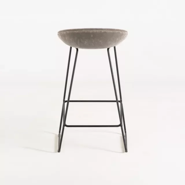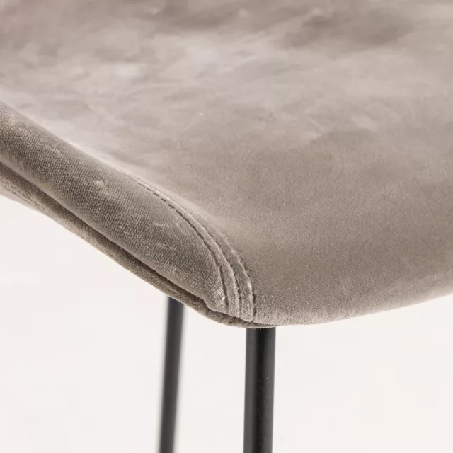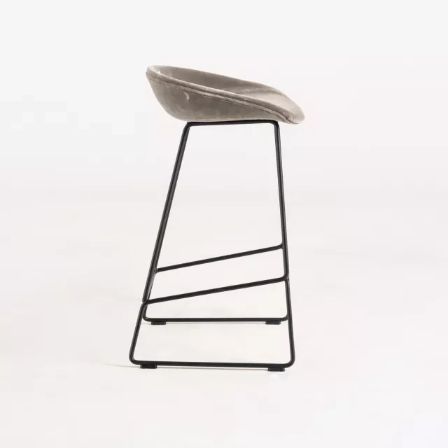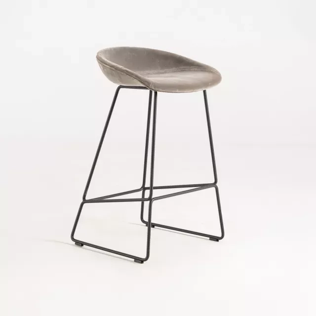 Använd barstolen About a Stool AAS39 från HAY vid ståbord, bardiskar eller kontorskök där yteffektiv sittning behövs. Den rundade sitsen uppmuntrar en upprätt hållning vid kortare möten och pauser. Metallstativet ger stabilitet på både hårda golv och textil. Det grå sammetstyget bidrar med visuell värme i receptioner och samarbetsytor.