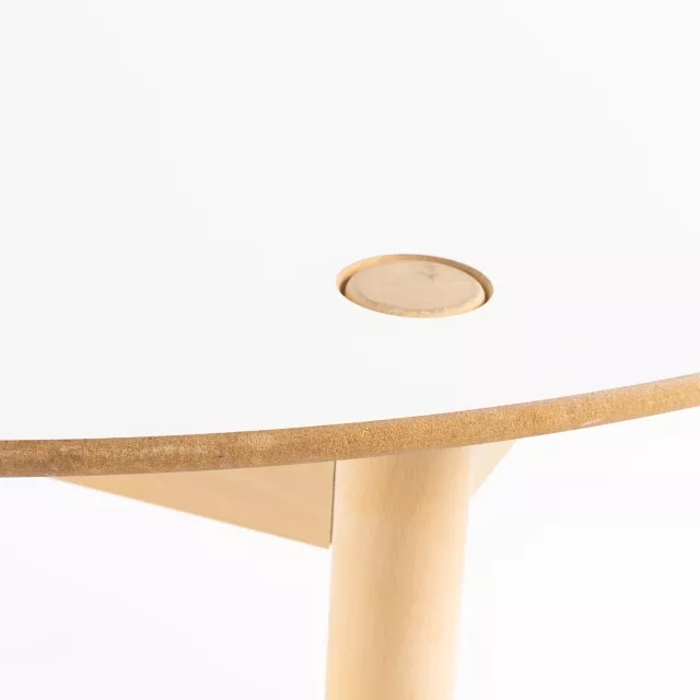 Detta runda cafébord från HAY är ett utmärkt miljövänligt komplement till alla professionella eller gästvänliga miljöer. Med robusta ben tillverkade i massiv bok kombinerar detta återbrukade bord hållbara material med tidlös designkvalitet. Den rena vita laminatbordsskivan förstärker dess moderna estetik, vilket gör det lämpligt för varierade miljöer och säkerställer praktisk enkelhet vid daglig användning.