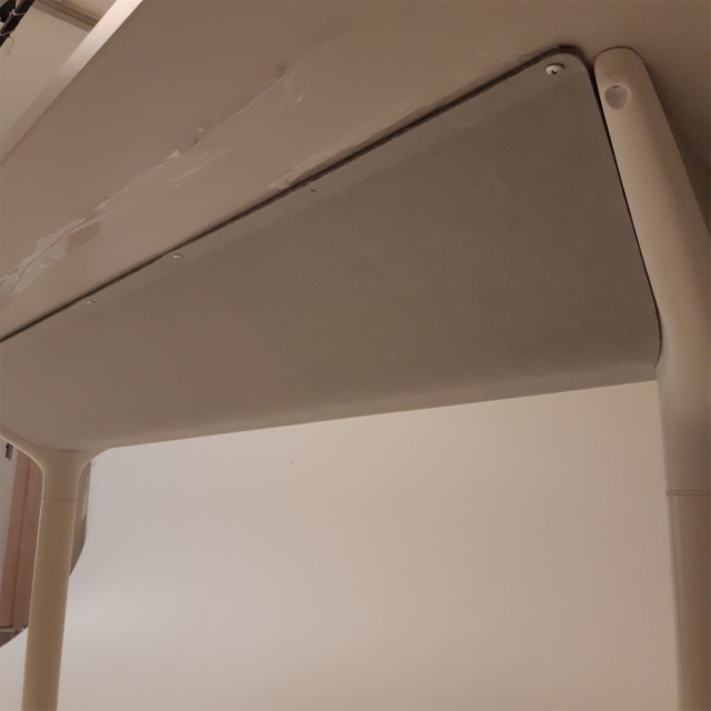 Skiva i ljusgrå laminat, M6. Vitlackerat stativ.
