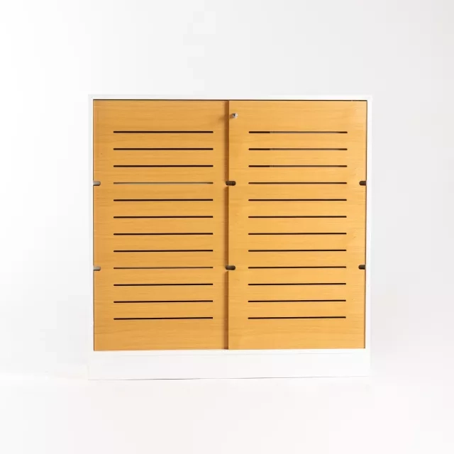 Skåpet med skjutdörrar från Horreds ger pålitlig förvaring i ett yteffektivt format. Denna begagnade modell med skjutdörrar sparar gångutrymme och passar kontor, mötesrum och korridorer.