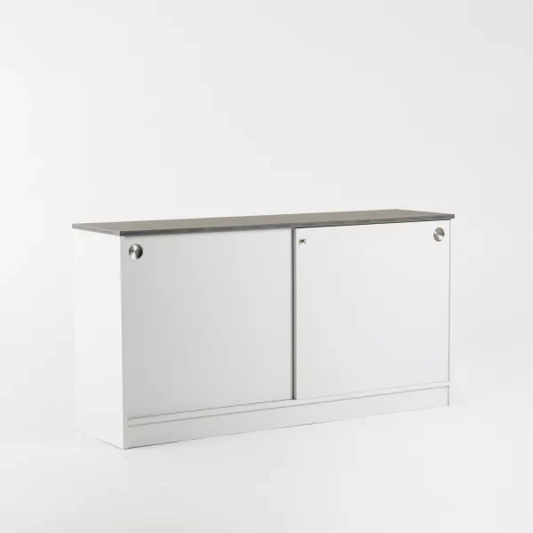 Skåpet VX från Horreds är ett återbrukat förvaringsskåp med skjutdörrar för kontor och andra professionella miljöer. Front och stomme i björk och vitt ger ett sobert uttryck som samspelar väl med modern inredning. De låsbara dörrarna med nyckel skyddar handlingar och utrustning, och höjden 3xA4 rymmer pärmar och standardiserade kontorsformat. Skjutdörrar kräver inget svängutrymme, vilket gör Horreds VX skåp lämpligt i korridorer, mötesrum och ytor där golvytan är begränsad. Varje återbrukat exemplar är genomgånget av våra tekniker för att säkerställa lättgående skenor och ett pålitligt lås före leverans. Horreds VX förvaringsskåp stödjer cirkulära inköp och förlänger livslängden på möbler av hög kvalitet. Använd det för att strukturera gemensam utrustning, arkivera dokument eller ge personlig förvaring utan att ta onödig yta i anspråk. Den neutrala björk och vita finishen gör det lätt att kombinera flera VX skåp till en sammanhållen och säker förvaringslösning. 3xA4-formatet underlättar planering tillsammans med skrivbord, skrivare och andra förvaringsmoduler.