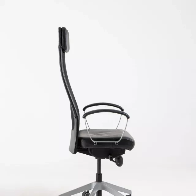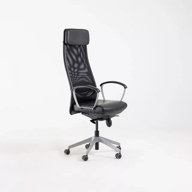 Kontorsstolen Markus från IKEA, designad av Henrik Preutz, kombinerar stil med funktionalitet för alla kontorsmiljöer. Med sin snygga svarta skinnsits och ventilerande svarta meshrygg erbjuder denna stol både komfort och stöd under långa arbetsdagar.