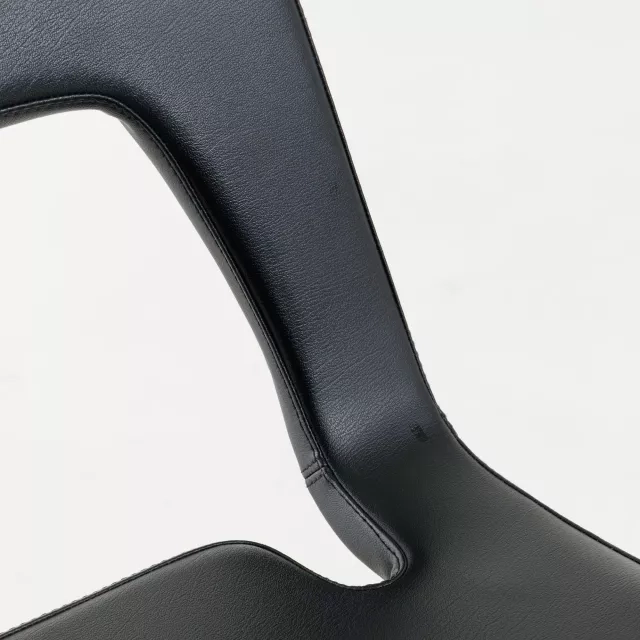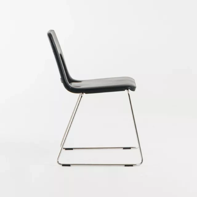 Konferensstolen Studio från Johanson Design, elegant formgiven av Alexander Lervik, är ett utmärkt val för hållbara kontorsmiljöer. Denna återbrukade stol förenar funktion med stil och är klädd i slitstarkt, svart konstläder som tål tidens tand. Den förkromade stålramen adderar inte bara en elegant touch, utan ger också robust stöd, vilket gör den lämplig för dynamiska kontorsmiljöer. Stolens stapelbara egenskaper säkerställer effektiv förvaring och anpassningsförmåga i olika professionella sammanhang.