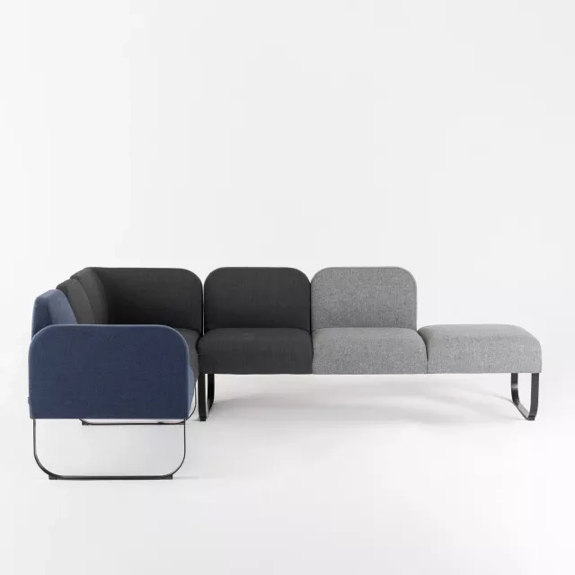 Med modulärt format anpassar sig Bail till raka, hörn- eller ö-lösningar och kan snabbt möbleras om när behoven ändras. Väl avvägda proportioner ger bekvämt väntande och informella möten utan att ta över rummet. Den tåliga konstruktionen gör modulsoffan Bail lämplig för kontor, coworking och hospitality.