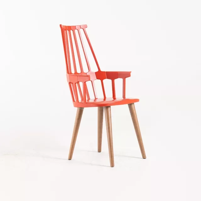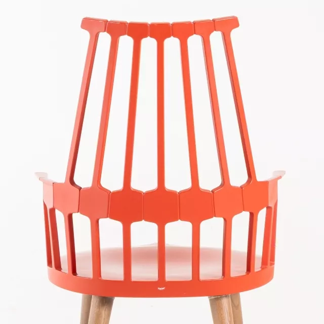 Comback är en karmstol från varumärket Kartell med en stabil konstruktion som tål miljöer med hög belastning. Den generösa sitsen och omfamnande ryggen uppmuntrar en upprätt sittställning vid kortare möten och spontana samtal. Stolen flyttas smidigt när ytor behöver möbleras om för projekt eller aktiviteter.