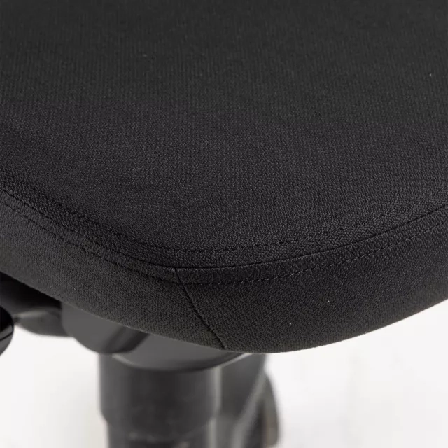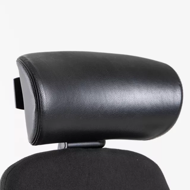 Den ergonomiska skrivbordsstolen 9000 från Kinnarps är ett professionellt val för alla kontorsmiljöer. Nyrenoverad och omtapetserad i ett stilrent svart tyg kombinerar denna stol funktionalitet med en modern estetik. Med justerbara armstöd och nackstöd klädda i svart läder erbjuder den en personlig touch av komfort och elegans.