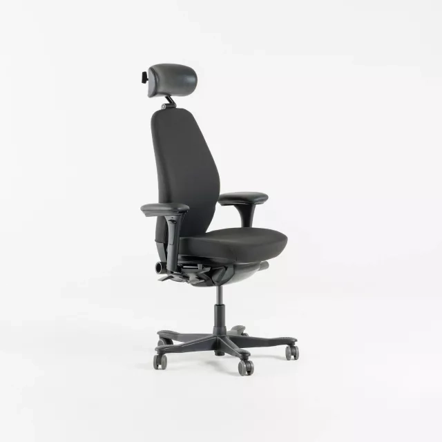 Kontorsstolen 9000 från Kinnarps är en ergonomisk modell som är nyrenoverad och omklädd i slitstarkt svart tyg. Stolen har justerbara armstöd samt ett justerbart nackstöd i svart läder för stabilt stöd under långa arbetspass. De många inställningarna gör det enkelt för varje användare att hitta en balanserad sittställning med god avlastning. Kinnarps 9000 är en mångsidig och populär lösning för enskilda arbetsplatser, delade skrivbord och mötesrum där ergonomin behöver vara konsekvent. Modellen, formgiven av Johan Larsvall och Torbjörn Höjer, förenar beprövade reglage med ett uppdaterat utförande för förlängd livslängd. Att välja 9000 från Kinnarps stödjer ett mer cirkulärt arbetssätt samtidigt som funktionen håller för daglig drift.