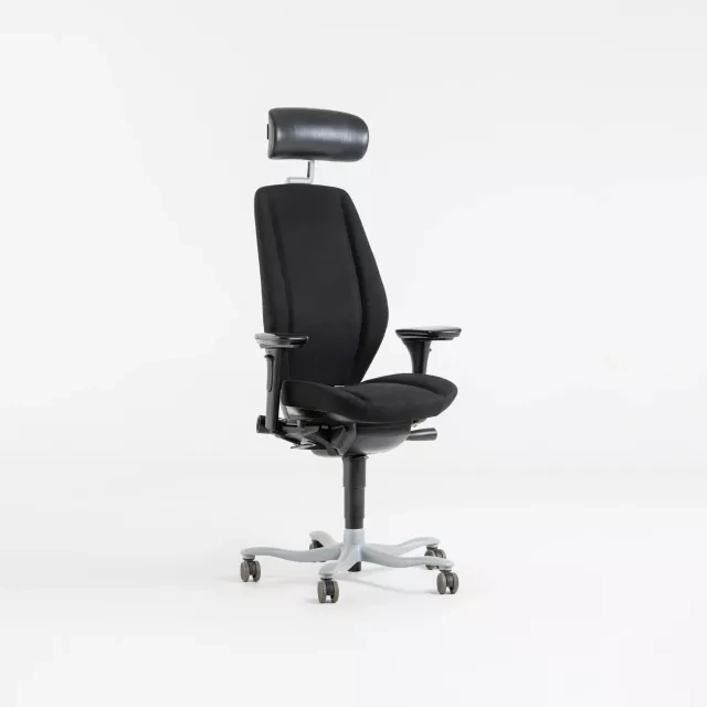Kontorsstolen 9000 från Kinnarps är ett ergonomiskt val för arbetsplatser som prioriterar komfort, livslängd och genomtänkt formgivning. Stolen är renoverad och omklädd i Lido svart tyg, med justerbara armstöd och ett nackstöd i svart läder för stabilt stöd under arbetsdagen. Modellen är formgiven av Johan Larsvall och Torbjörn Höjer och kombinerar beprövad teknik med en ren uttrycksbild.