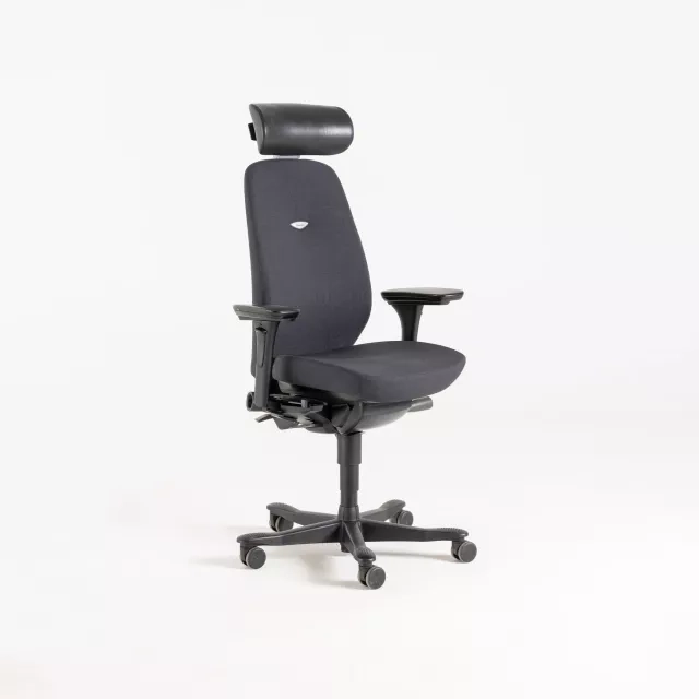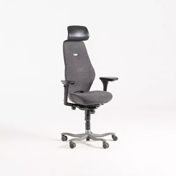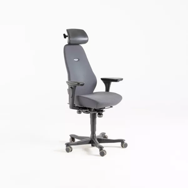 Kontorsstolen 9000 från Kinnarps ger ergonomiskt stöd i professionella miljöer. Stolen är klädd i slitstarkt grått tyg. Justerbara armstöd och ett nackstöd i svart läder möjliggör personlig komfort. 9000 är en kontorsstol från Kinnarps, formgiven av Johan Larsvall och Torbjörn Höjer.