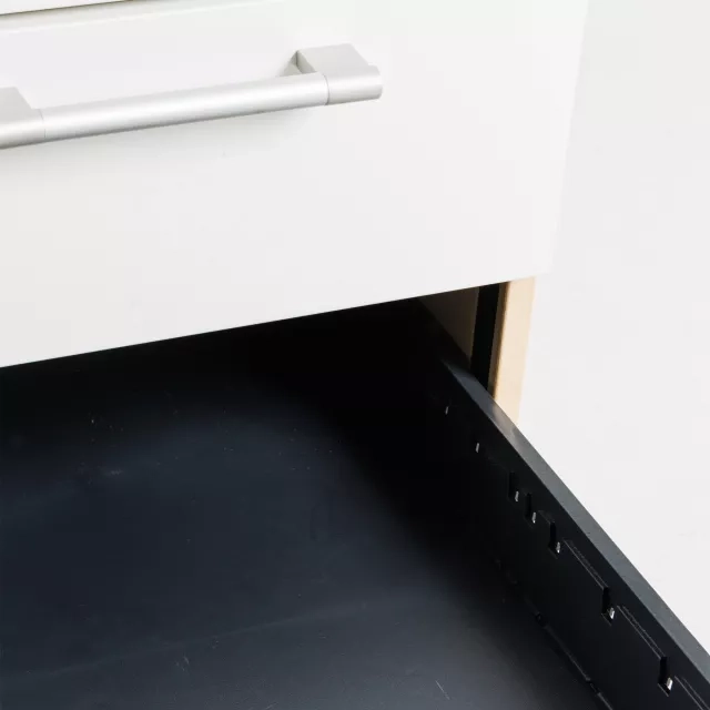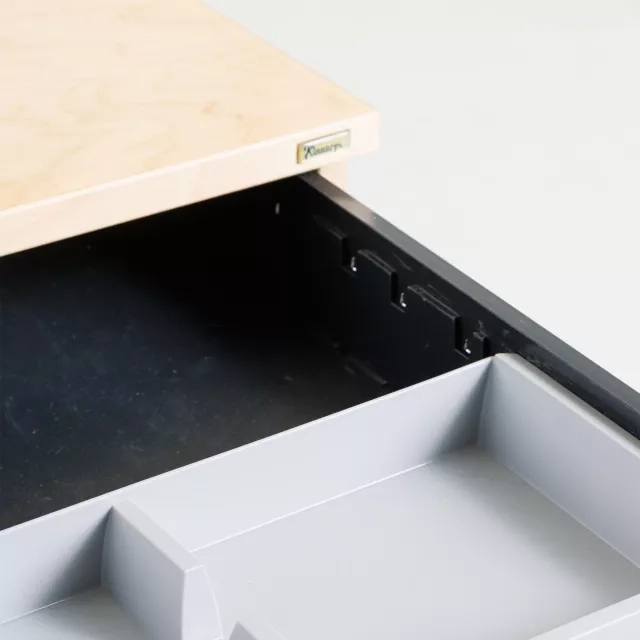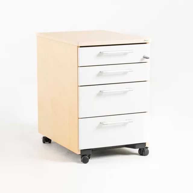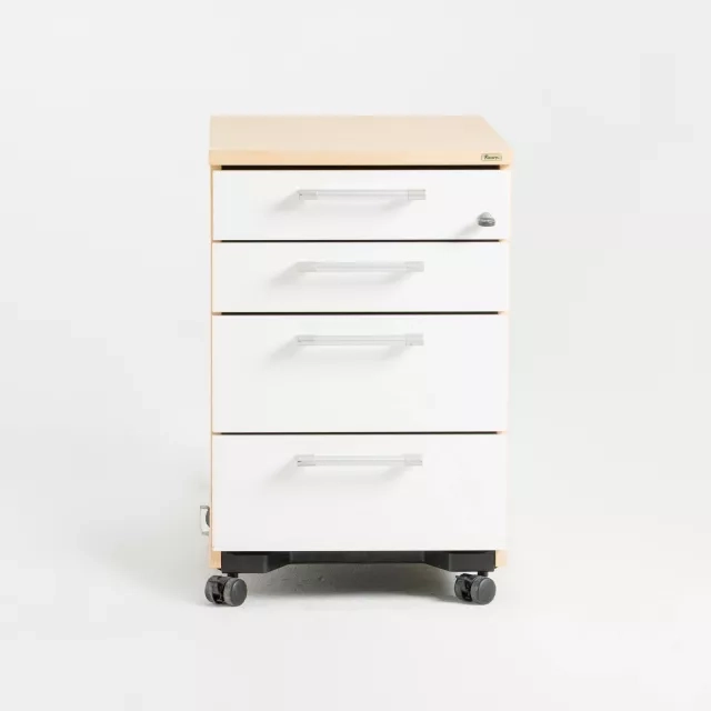 De fyra lådorna håller dokument, tillbehör och personliga saker organiserade. Den mobila konstruktionen underlättar ommöblering i kontor, coworkingmiljöer och projektytor.