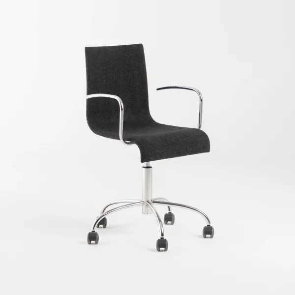 Konferensstol med karm från Klaesson klädd i grönt läder med tydlig patina. Snurrfot med återsnurrsfunktion håller rummet prydligt efter möten. Höj- och sänkbar sits anpassar sig för olika användare och behov. Läderlindade armstöd ger stabilt stöd under längre samtal. Denna begagnade stol passar styrelserum, sessionssalar och mötesytor där komfort och hållbarhet prioriteras. Den karaktärsfulla ytan minskar behovet av nya material och ger ett representativt intryck. Stolen kan omkläs på beställning i valfritt tyg från prisgrupp 1 för en enhetlig inredning. Kontakta oss för information om leveranstider och tillgängligt antal.