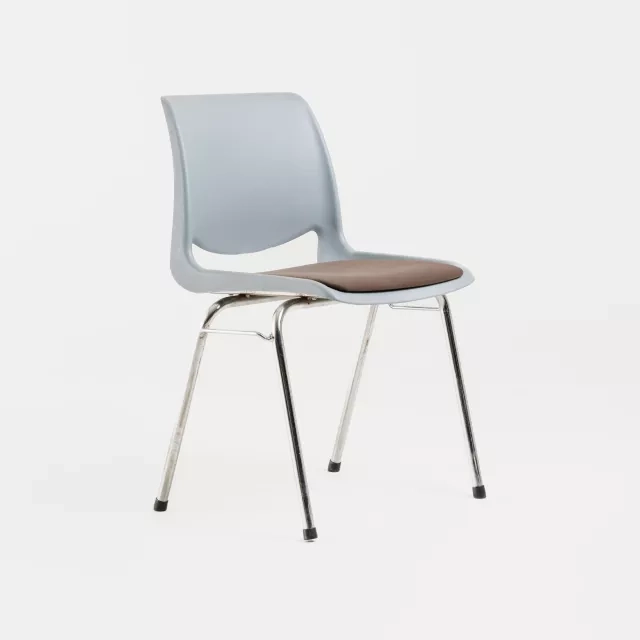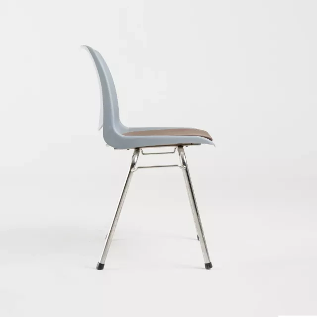Återbrukade kvalitetsstolen R-48, designad av Bendt Winge för Nordic Comfort Products under 1970-talet, fortsätter att vara ett populärt val i konferensrum världen över. Känd för sin hållbara konstruktion, är stolen tillverkad med en grå formsprutad polypropylensits, kromade ben och en stoppad mörkbrun tygdyna. Den nyligen omklädda stolen förenar klassisk design med modern komfort och hållbarhet och har redan sålts i sex miljoner exemplar.