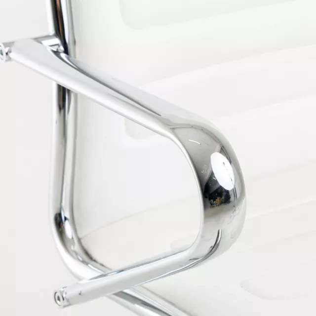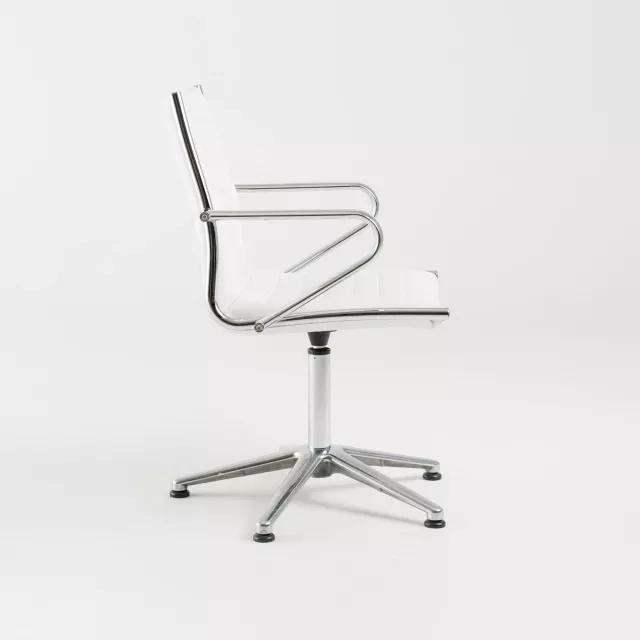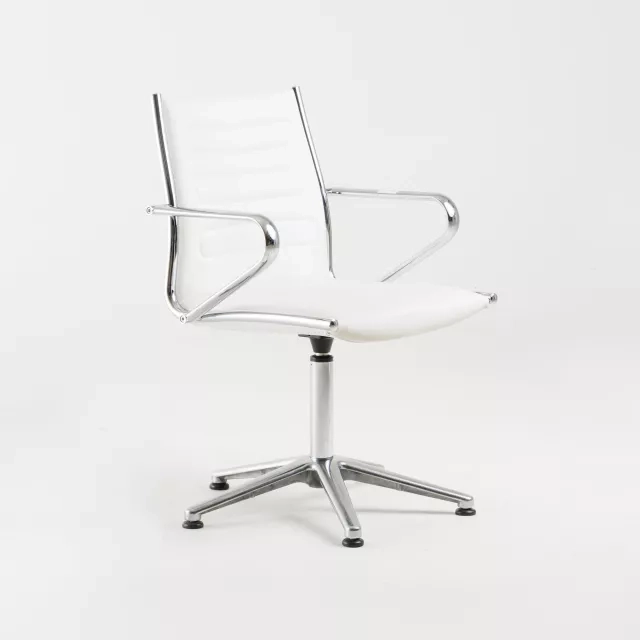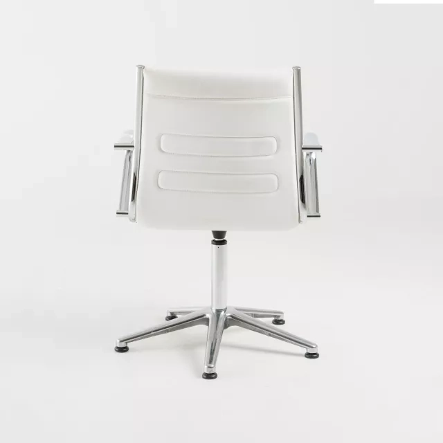Mötesstolen Meeting Classic från italienska Sitland är ett sofistikerat val för konferensrum där både stil och funktionalitet behövs. Stolen är klädd i elegant vitt konstläder och har ett kromat fotkryss som förstärker det professionella intrycket av varje mötesmiljö.