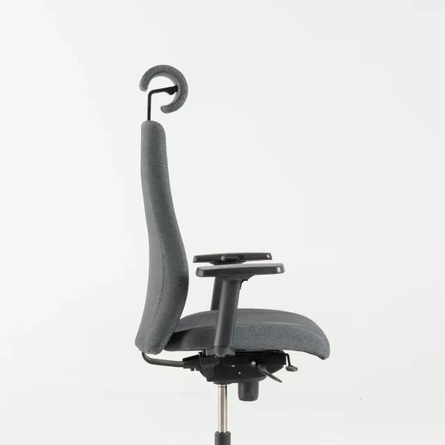 Kontorsstolen Lancaster är en återbrukad arbetsstol för professionella miljöer. Modellen är helklädd i ett grått, slitstarkt tyg som tål frekvent användning. Stolen har armstöd och nackstöd som hjälper till att hålla en god hållning. En multisynkronmekanism ger följsam rörelse och balanserad lutning.