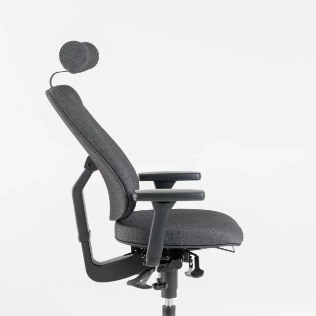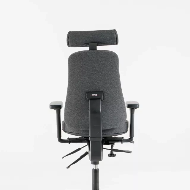 The Plus 382+ task chair is refurbished and reupholstered in grey Vescom Acton fabric. This fully upholstered model is a complete ergonomic choice for daily use in professional settings. Choosing a reused chair supports circular furnishing and extends the product lifecycle.