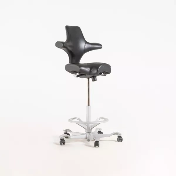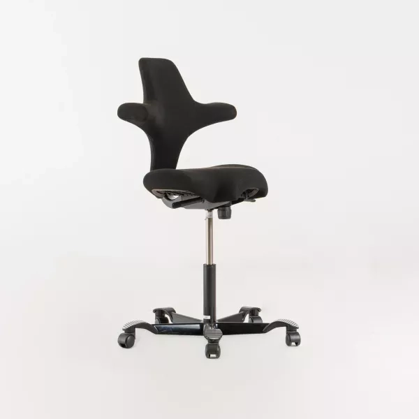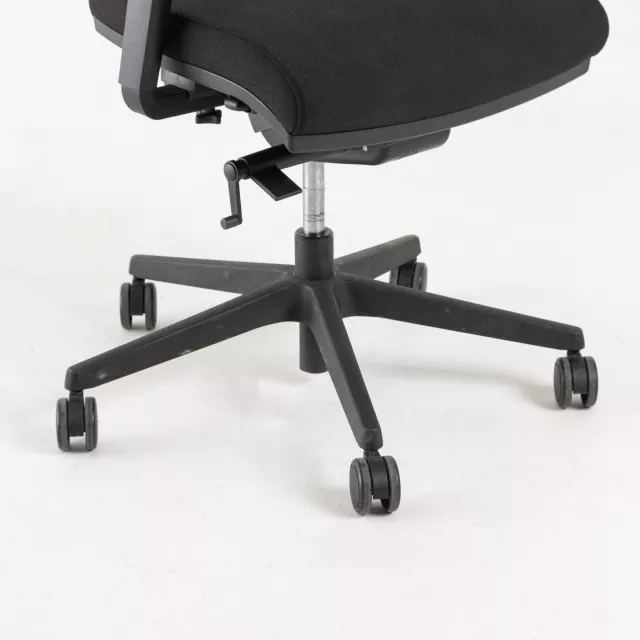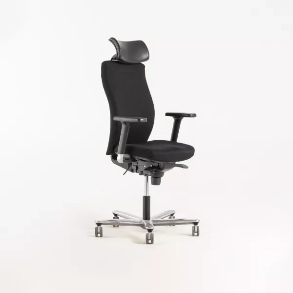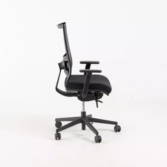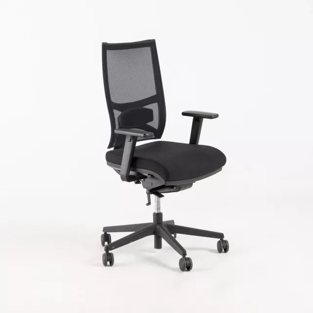 Den återbrukade kontorsstolen Team Strike Executive är framtagen för moderna arbetsmiljöer där både ergonomi och hållbarhet är i fokus. Sitsen är klädd i slitstarkt svart tyg och ryggstödet består av luftig svart mesh, vilket ger komfort hela arbetsdagen.