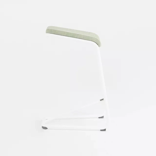Den vadderade sitsen ger bra stöd vid både kortare pauser och längre sittningar. Det stabila fotstödet främjar en balanserad hållning vid ståbord. Den genomtänkta geometrin uppmuntrar naturlig rörelse och minskar trötthet. Den rena, kompakta silhuetten gör att barstolen använder ytan effektivt i miljöer med hög aktivitet.