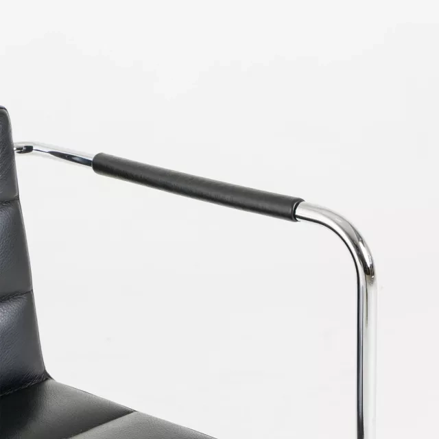 Konferensstolen Cinema Sport från Lammhults ger en tydlig siluett och stabil sittkomfort i mötesrum och lounger. Denna återbrukade modell är helklädd i svart läder och byggd på en kromad stålstomme med integrerade armstöd. Formgiven av Gunilla Allard ger den ett uttryck med hög kvalitet som passar väl i kundytor och styrelserum.
