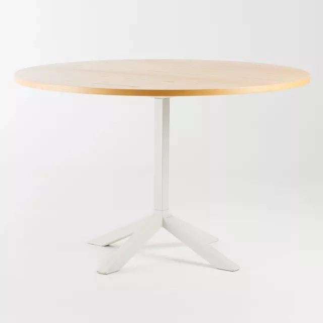Konferensbordet Funk från Lammhults är ett högt, runt mötesbord för aktiva samarbetsytor och projektzoner. Det levereras med vitt stativ och en skiva i ask. Med en höjd på 895 mm passar det för stående dialog och fungerar bra tillsammans med lägre barstolar. Den runda formen främjar inkluderande samtal och tydlig ögonkontakt vid snabba möten. Detta återbrukade konferensbord stödjer en mer cirkulär inredning med mindre nyproduktion. Funk är ett runt konferensbord från varumärket Lammhults som tål daglig användning i kontor, offentliga miljöer och utbildningslokaler. De ljusa materialen samspelar enkelt med befintlig inredning och skapar ett ordnat uttryck. Välj konferensbordet Funk från Lammhults när du behöver en hög mötespunkt som sparar yta och bjuder in till korta avstämningar. Det lämpar sig väl för projektutrymmen, breakout-ytor och caféliknande miljöer där team träffas ofta. Mått och material ger stabil placering och enkel skötsel över tid.
