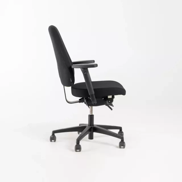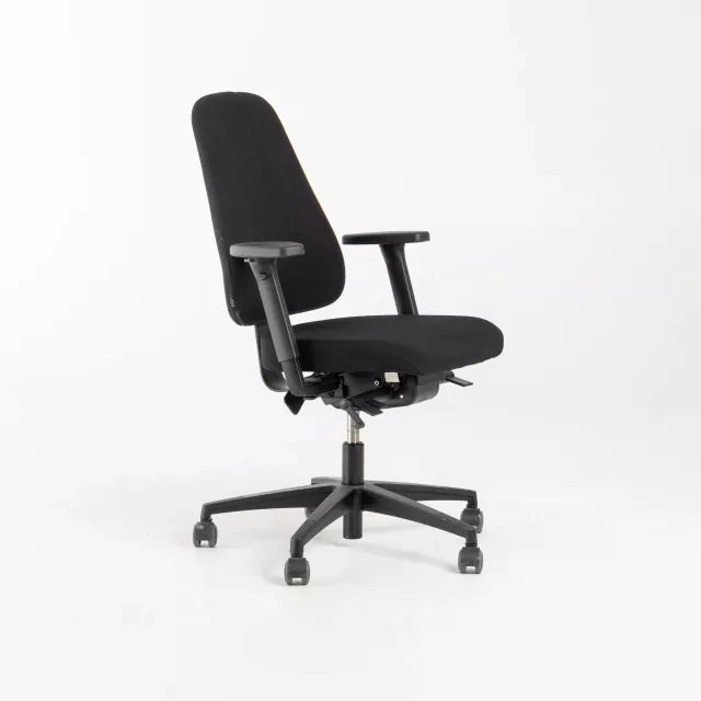 Kontorsstolen LD63 från Lanab Design är en svensktillverkad, återbrukad arbetsstol för pålitlig vardagsanvändning i professionella miljöer. Stolen är helklädd i svart tyg och utrustad med armstöd samt nackstöd för stabilt, ergonomiskt sittande vid längre pass. Denna begagnade LD63 från Lanab Design är noggrant kontrollerad och genomgången av våra tekniker för att säkerställa funktion och jämn komfort. Passar bra till enskilda arbetsplatser, mötesrum och hybrida kontor där kvalitet och resurseffektivitet prioriteras. Den robusta konstruktionen och den rena designen bidrar till lång livslängd och ett mindre klimatavtryck. Att välja kontorsstolen LD63 från Lanab Design förlänger materialens användning inom en cirkulär inredningslösning.