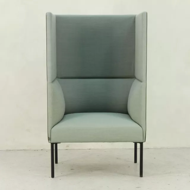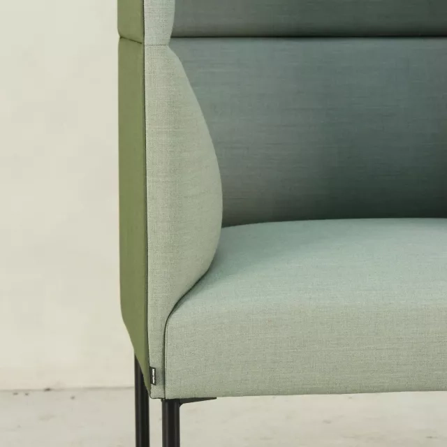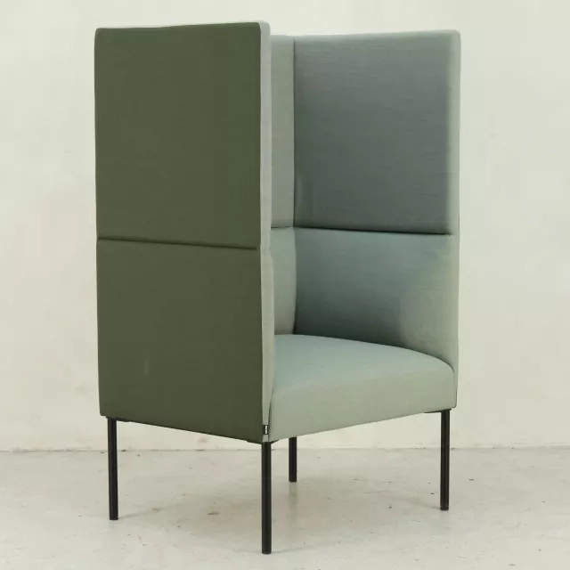 Denna återbrukade fåtöljbås Noora från Martela är en stilren sittlösning som passar den kreativa arbetsplatsen. Med sina höga sidor skapar den naturligt en tyst och skyddad sittplats, vilket underlättar koncentration och sekretess vid fokuserade uppgifter. Hela Noora-serien är certifierad med Möbelfakta, vilket markerar ett åtagande för höga kvalitets- och hållbarhetsstandarder. Detta gör den till ett bra val för miljömedvetna organisationer.