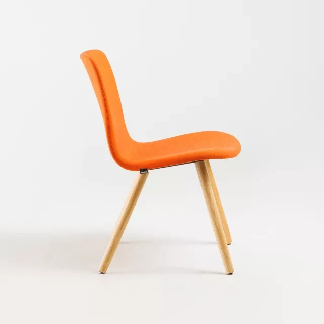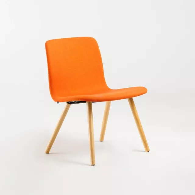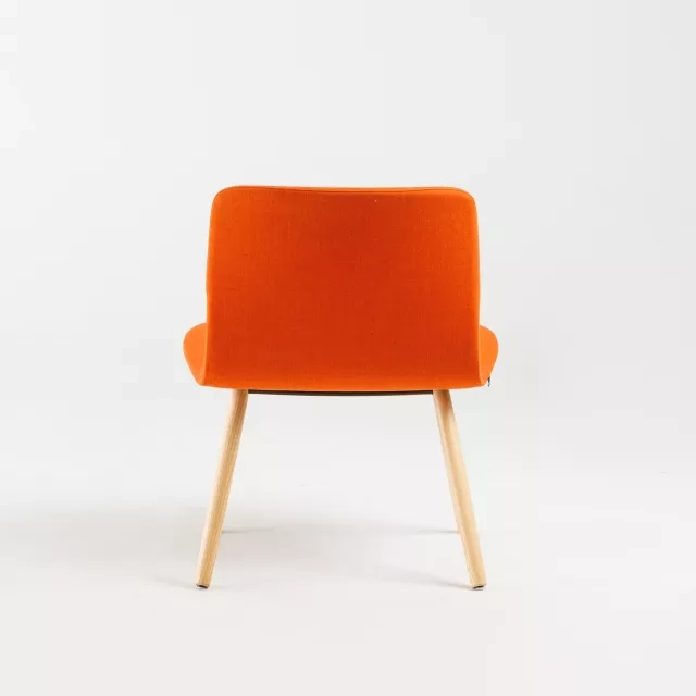 Loungefåtöljen Sola från Martela, formgiven av Antti Kotilainen, ger ett färgstarkt inslag i både lounge och mötesrum med sin helklädda orangea textil. Fåtöljen är återbrukad till nyskick, vilket garanterar hållbarhet och kvalitet för företagsmiljöer.