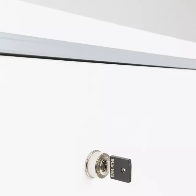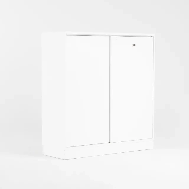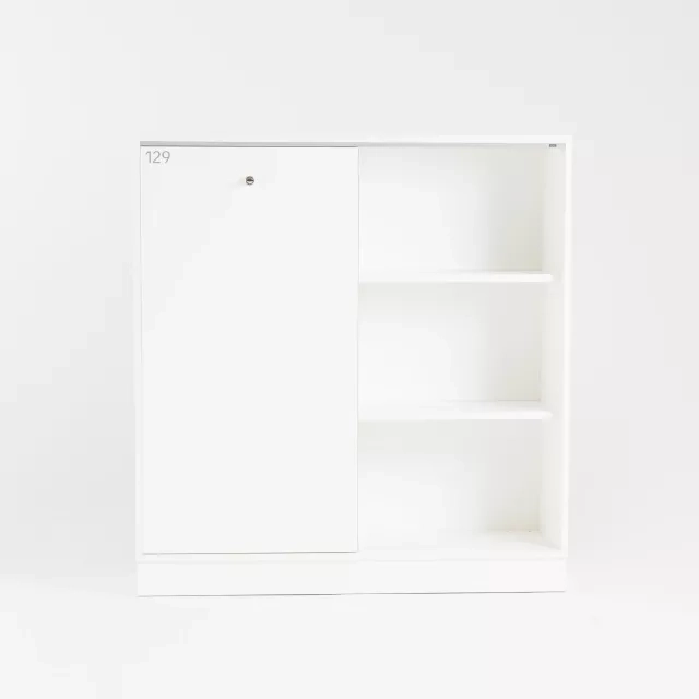 Detta återbrukade skjutdörrsskåp från Martela erbjuder en praktisk lösning för lagringsbehov på kontoret. Skåpet är designat med tre pärmhöjder, vilket maximerar utrymmeseffektiviteten samtidigt som det möjliggör säker förvaring. Skjutdörrarna ger enkel åtkomst utan att kräva extra utrymme för dörrsväng, vilket gör det idealiskt för trånga utrymmen. Det låsbara skåpet ger trygg säkerhet för värdefulla dokument och föremål.