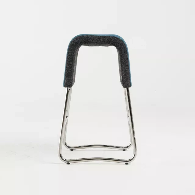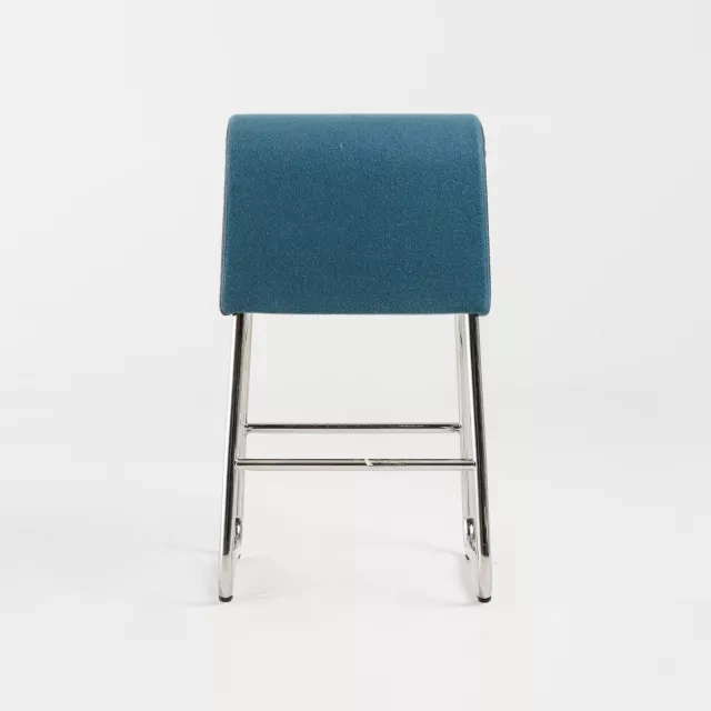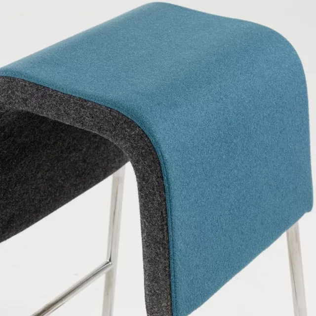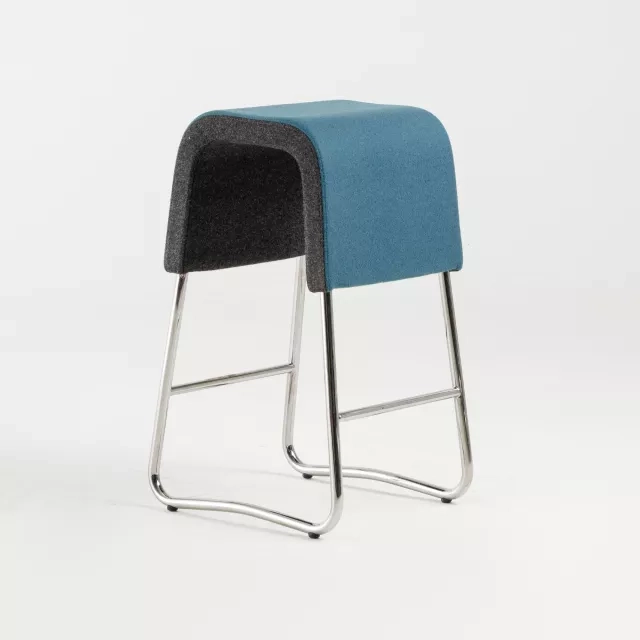 Barpallen Plint från Materia, skapad av formgivarna Kersti Sandin & Lars Bülow, representerar hållbar design med sin återbrukade stomme och klädda sits i blått tyg. Denna barpall är genomtänkt utformad med medar och fotstöd, vilket erbjuder både komfort och stil för moderna kontorsmiljöer eller barer.