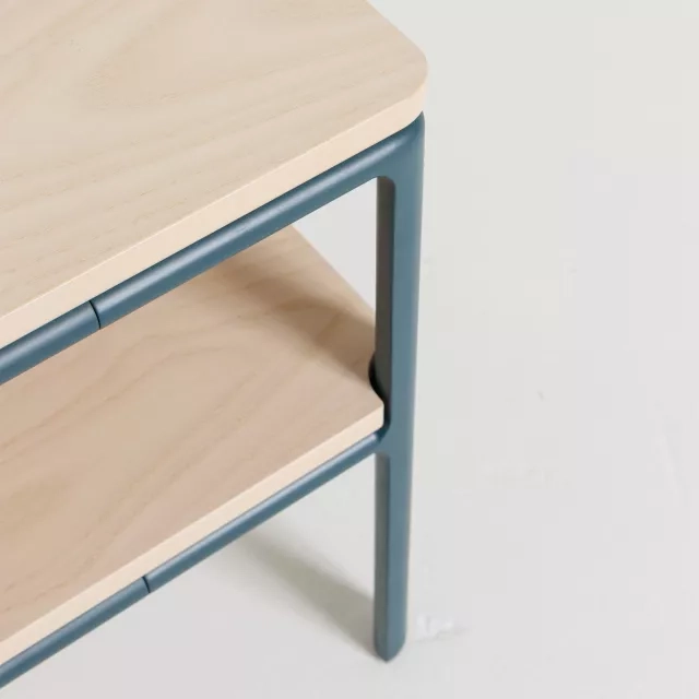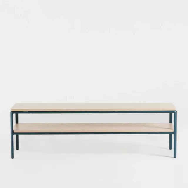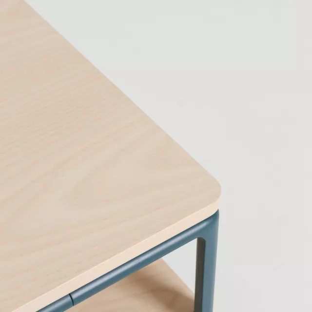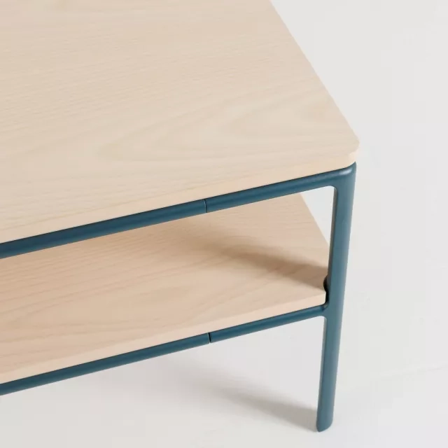 Soffbordet Crest från Materia, designat av Mattias Stenberg, är ett gediget och funktionellt möbelstycke som passar utmärkt i olika miljöer som pausytor, personalrum eller lobbyer. Med sin Möbelfakta-märkning lovar det kvalitet och hållbarhet med sina askskivor och blålackerade metallstativ, och det framstår i nyskick samtidigt som det erbjuder praktiskt förvaringsutrymme mellan skivorna.