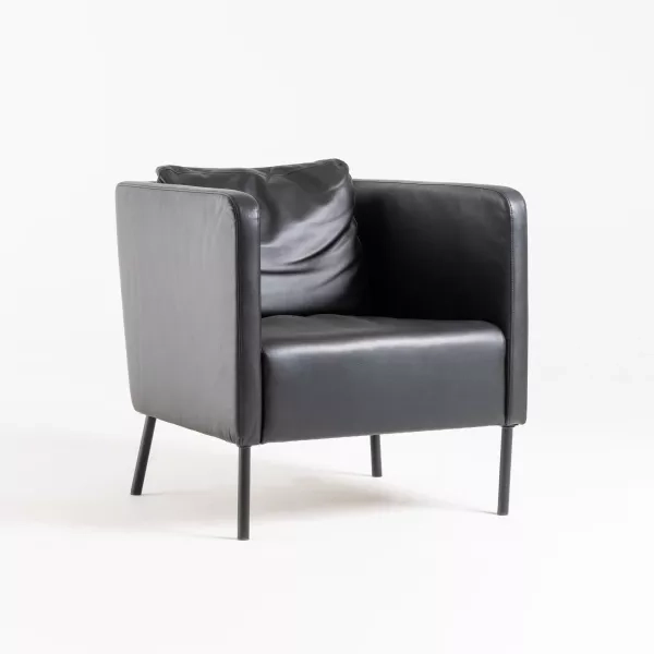 Fåtöljen Mute från Mitab ger ljuddämpning och visuell avskärmning i moderna arbetsmiljöer. De höga sidorna bildar en naturlig skärm som stänger ute omkringliggande aktivitet. Designad av Joel Karlsson är denna återbrukade fåtölj lämplig för fokuszoner, informella möten och samtal i kontor, bibliotek och receptioner.