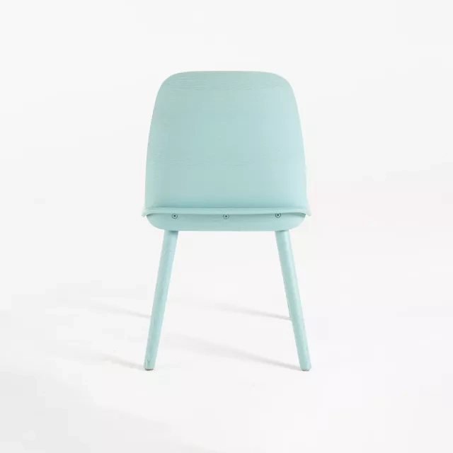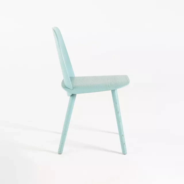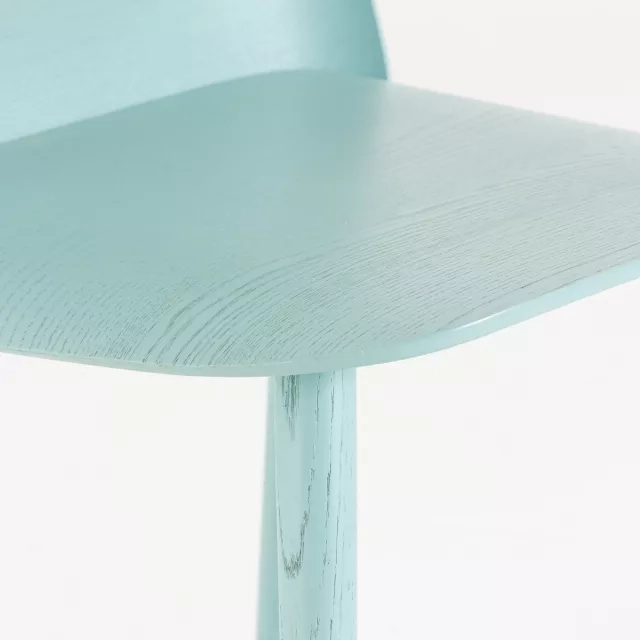 Konferensstolen Nerd från Muuto förenar hantverkskänsla med enkel funktion. Formgiven av David Geckeler, med ryggstöd och sits i formpressad fanér och en välgjord skarv. Ben i massivt trä ger stabilitet och en taktil känsla. Detta begagnade exemplar är i lackad ask och har en tålig yta för daglig användning i professionella miljöer.
