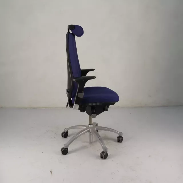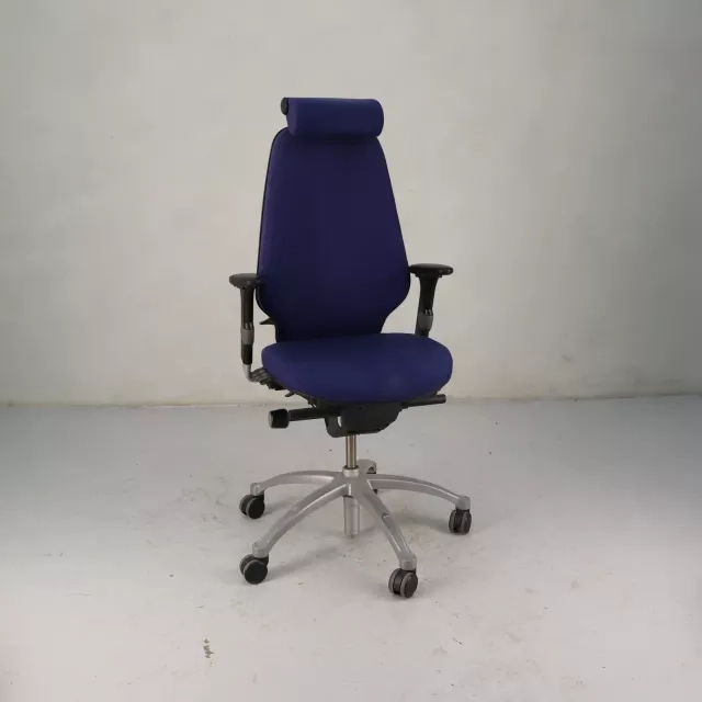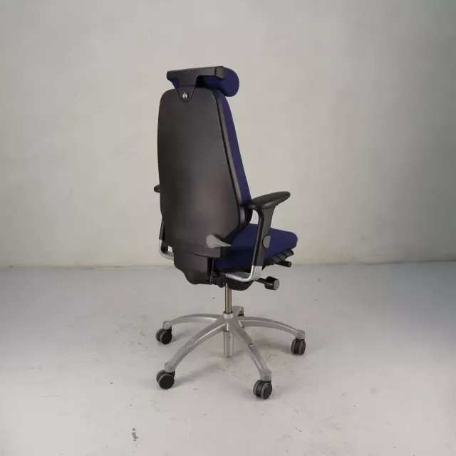 Kontorstolen Logic 400 fra RH/Flokk, designet av Flokk Design Team, tilbyr en ergonomisk løsning for kontormiljøer. Med justerbare armlener, høy rygg og nakkestøtte er denne gjenbrukte kontorstolen trukket i grått stoff. Den kombinerer komfort med fleksibilitet og har brukervennlige justeringsmuligheter samt luftregulert korsryggstøtte for å forbedre sitteopplevelsen.