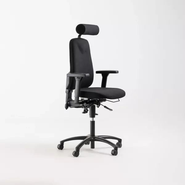 Denne gjenbrukte kontorstolen fra Bejot er et utmerket valg for bedrifter som ønsker å forbedre kontorergonomien med bærekraftige løsninger. Stolen har et elegant svart design, forkrommet kryssfot med hjul og justerbar setehøyde samt armlener, noe som gjør det mulig å tilpasse den for best mulig sittestilling.