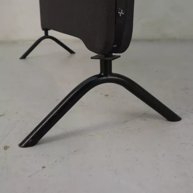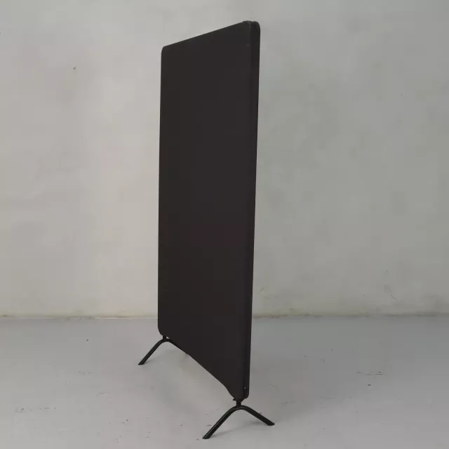 Gulvskjermen Edge fra Lintex, designet av Halleroed, kombinerer funksjon og estetikk for moderne kontormiljøer. Denne brukte skjermen er trukket i et stilrent grått stoff, med en kontrasterende svart kantlist som rammer inn designet elegant. Oppgitt pris inkluderer føtter for enkel montering og integrering i arbeidsområdet ditt.