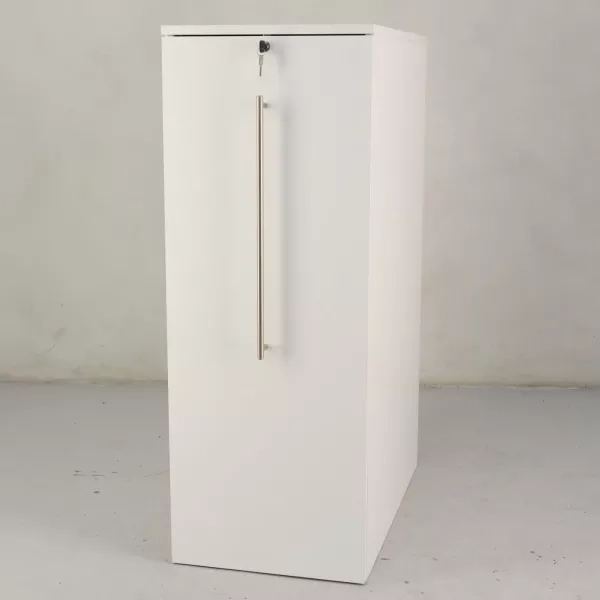 Dette gjenbrukte towerskapet fra Horreds er en praktisk løsning for kontormiljøer. Skapet er tre permhøyder høyt og kommer i en ren hvit farge som kompletterer alle moderne arbeidsplasser. Designet for å plasseres til venstre for skrivebordet, tilbyr dette låsbare skapet sikker oppbevaring for dine viktige dokumenter og kombinerer funksjonalitet med stil.