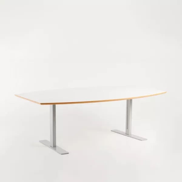 Konferensbordet Panel från Normann Copenhagen, formgivet av Simon Legald, förenar ett rent uttryck med funktion för moderna mötesrum. Skivan är tillverkad av FSC-certifierad furu och vilar på en robust pulverlackerad stålbas som ger stabilitet och lång livslängd. Tre diskreta justeringsskruvar under stativet gör att bordet står stadigt på ojämna golv och kan finjusteras vid installation. Detta begagnade konferensbord Panel är kontrollerat av våra tekniker och framstår i gott skick. Den generösa ytan stödjer workshops, kundmöten och samarbete i styrelserum, projektrum och gemensamma ytor. Den varma furuytan dämpar intrycket och bidrar till en välkomnande miljö utan visuell störning. Panel från Normann Copenhagen fungerar väl i skandinaviska interiörer och miljöer med blandade material. Genom återbruk förlänger ni livslängden på en kvalitetsprodukt och underlättar uppfyllelse av era hållbarhetsmål. De balanserade proportionerna möjliggör effektiv stolsplacering och god frihöjd för benen. Konferensbordet Panel från Normann Copenhagen är ett tryggt val för verksamheter som söker design, slitstyrka och lägre miljöpåverkan.