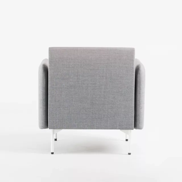 The Playback armchair from Offecct suits lounges, receptions and informal meeting zones. The model is fully upholstered in a grey fabric for a cohesive look and easy placement in existing schemes. This reused armchair balances a calm expression with dependable quality for professional environments.