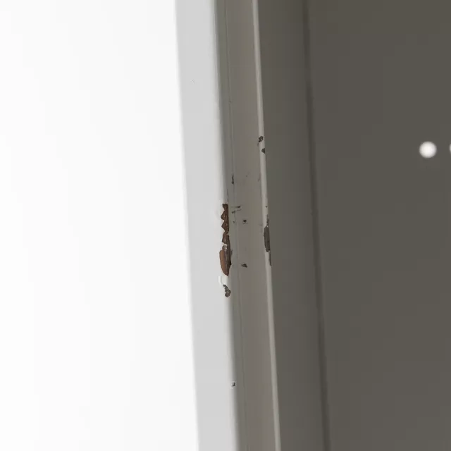 Skickinformation: Det finns bucklor och repor. Skåpet fungerar för personlig förvaring av arbetskläder, väskor och mindre tillhörigheter i industriella eller backoffice-miljöer där slitstyrka prioriteras.