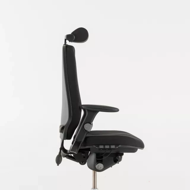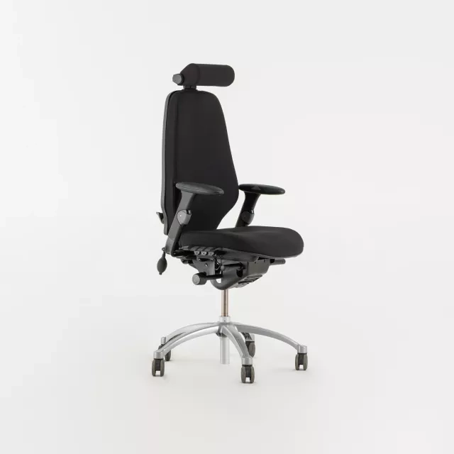 Kontorsstolen RH Logic 400 med hög rygg är ett ergonomiskt och återbrukat val för produktiva arbetsplatser. Den är formgiven av Flokk Design Team och ger exakt stöd under långa pass. Justerbara armstöd och ett uppumpbart svankstöd hjälper användaren till en neutral hållning. Den markerade höga ryggen stabiliserar överkroppen och uppmuntrar en upprätt, balanserad sittställning. Logic 400 från RH fungerar bra i både delade ytor och fasta arbetsplatser.