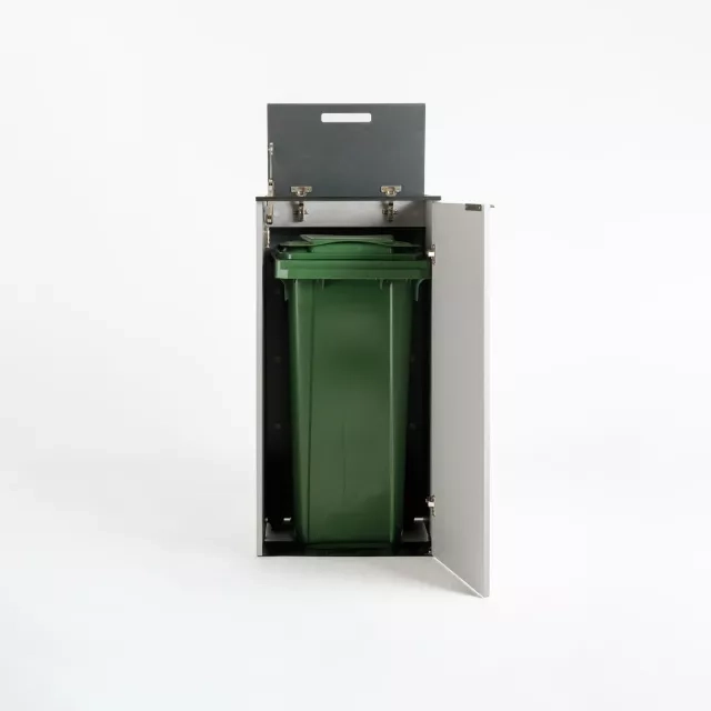 Som skåp till källsorteringslösningen Celsius från AJ Produkter samlar det fraktioner på ett ställe och underlättar tydlig märkning. Den enkla geometrin gör placering mot vägg eller som del av en större källsorteringsstation smidig. Välj detta återbrukade skåp för att standardisera avfallshantering i kontor, mötesplan och utbildningsmiljöer.