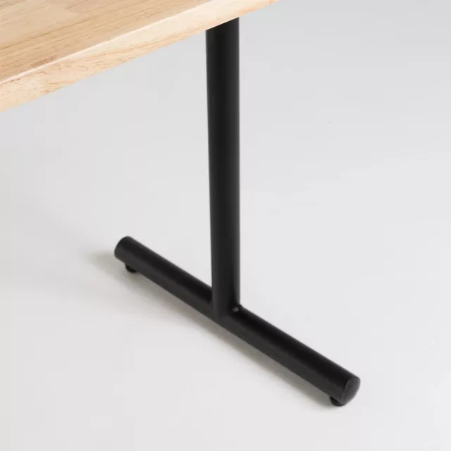 Detta mångsidiga och stiliga bord erbjuder funktionalitet med sin design i svart och ek, och passar som skrivbord, tillfällig arbetsplats, konferensbord eller utbildningsbord. Bordsskivan i massiv stavlimmad ek med utfräst hål för kablage optimerar kabelhantering, vilket är idealiskt för professionella miljöer.