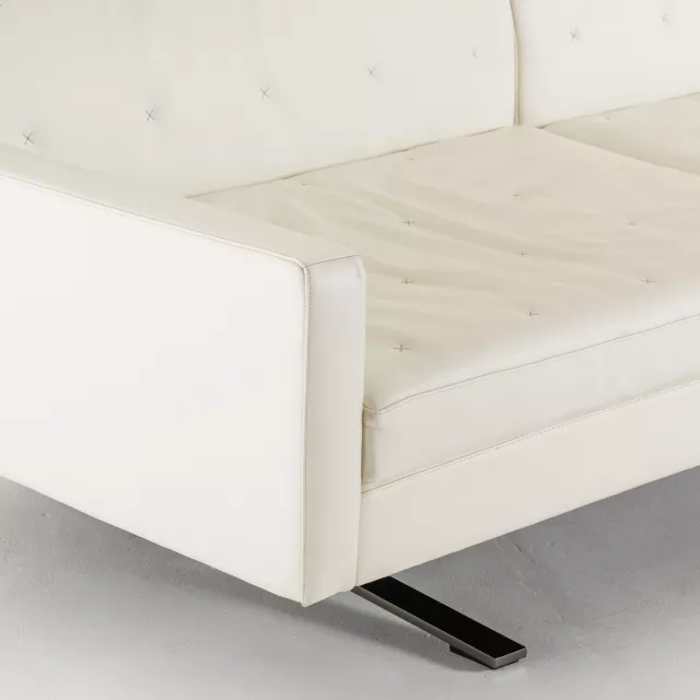 Soffan Kennedee från Poltrona Frau tillför välkänd italiensk form till receptioner, lounger och ledningsrum. Modellen är formgiven av Jean-Marie Massaud och förenar ett sobert uttryck med pålitlig sittkomfort för professionella miljöer. Denna begagnade Kennedee är funktionskontrollerad av våra tekniker och vid behov renoverad för trygg daglig användning.