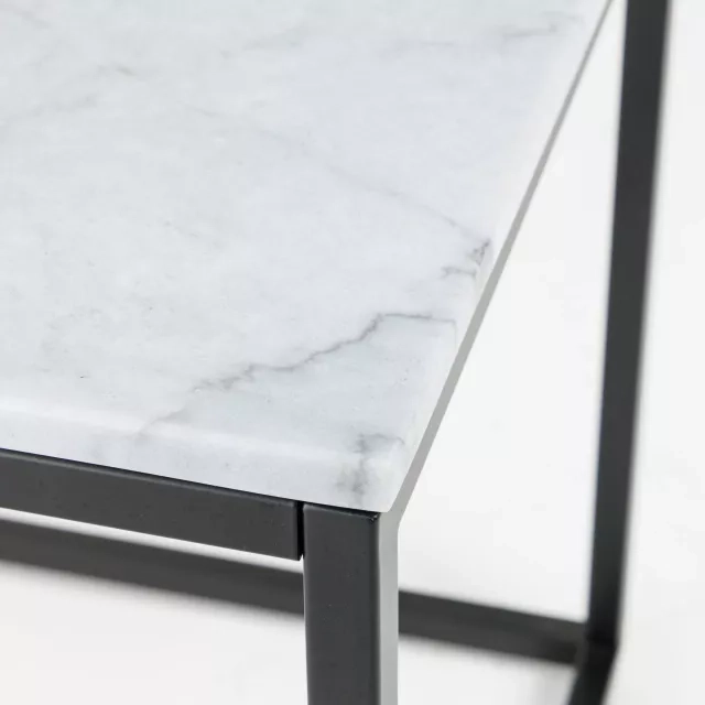 Soffbordet Accent från Mater, formgivet av Space Copenhagen, har en vit äkta marmorskiva och ett stabilt underrede i svart metall. Den rena siluetten passar väl i receptioner, loungemiljöer och informella mötesytor. Den naturliga stenen ger varje skiva diskreta variationer, vilket gör varje bord visuellt unikt i professionella miljöer. Accent är ett soffbord från varumärket Mater som förenar uttryck och funktion för daglig användning. Metallstativet bär marmorskivan med trygg stabilitet, och de släta ytorna är enkla att torka av i den dagliga driften. Som del av Soecos cirkulära sortiment av återbrukade kontorsmöbler förlänger detta bord livet för design av hög kvalitet och stödjer uppsatta hållbarhetsmål. Välj Mater Accent soffbord när du behöver en representativ mittpunkt som hanterar återkommande slitage. Den proportionerade storleken samspelar med soffgrupper och fåtöljer utan att dominera rummet. Med formgivning av Space Copenhagen tillför soffbordet Accent materialitet och karaktär till projekt med fokus på ansvarsfull upphandling.