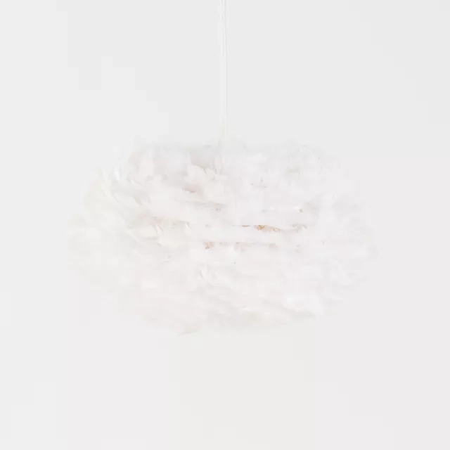 The Eos ceiling lampshade from Umage, designed by Ravn Christensen, features a white feather and paper construction. It delivers soft, glare-free light that suits receptions, lounges and meeting zones. The lightweight build makes positioning simple above tables or in open areas.