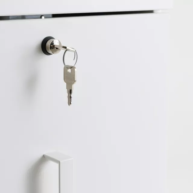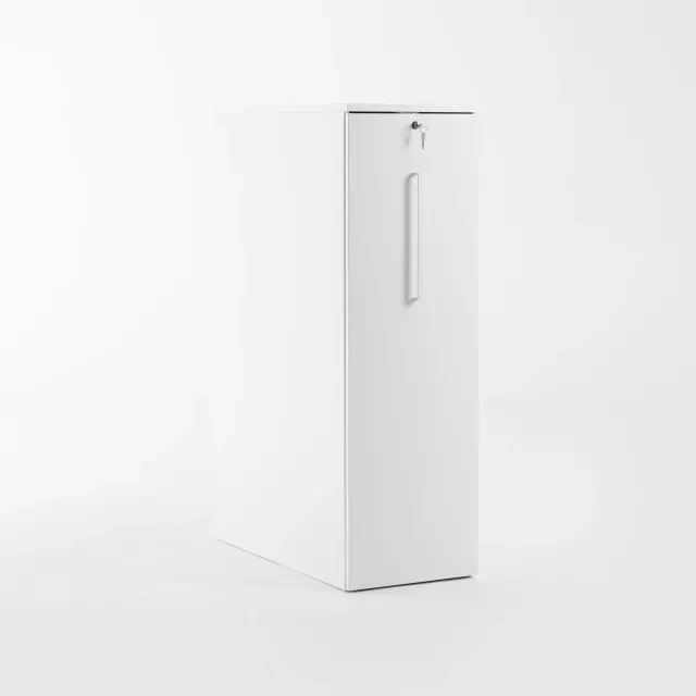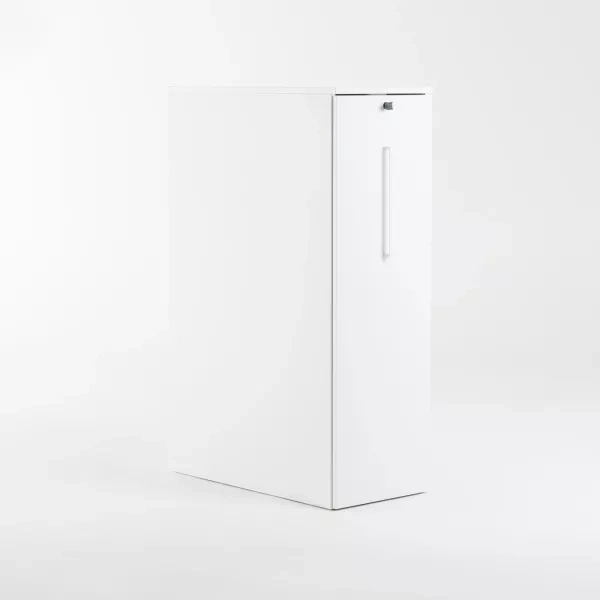 Detta vita towerskåp från Kinnarps placeras på vänster sida om ett skrivbord. Den smala konstruktionen ger personlig förvaring nära arbetsytan utan att ta golvyta. Som återbrukad towerförvaring bidrar den till cirkulära inköp och klarar daglig användning i kontor, coworking och offentliga miljöer. Vänsterorienteringen förenklar ordningen vid skrivbordet och håller dokument samt tillbehör lättillgängliga hela dagen. Den neutrala vita färgen matchar de flesta skrivbordssystem och befintliga inredningar. Varje enhet är noggrant genomgången av Soecos tekniker före leverans för pålitlig funktion i professionella miljöer.