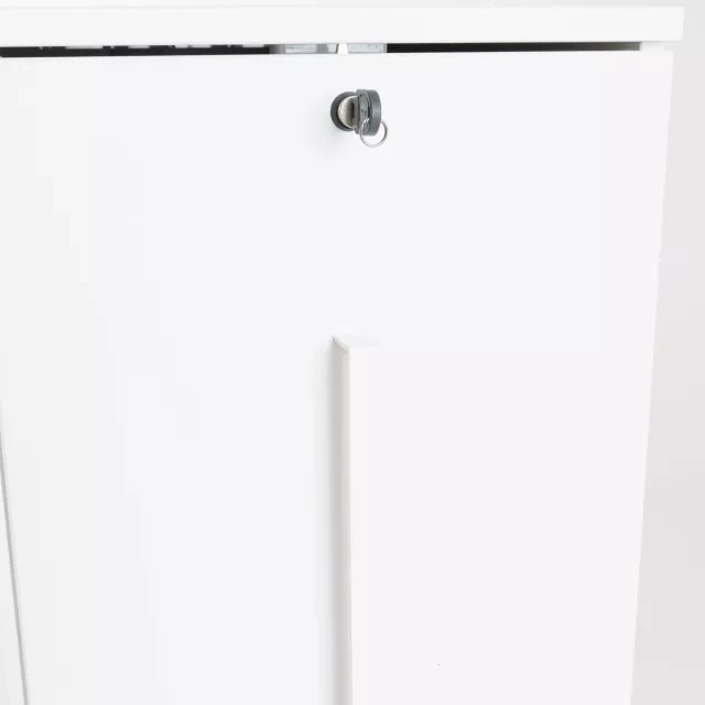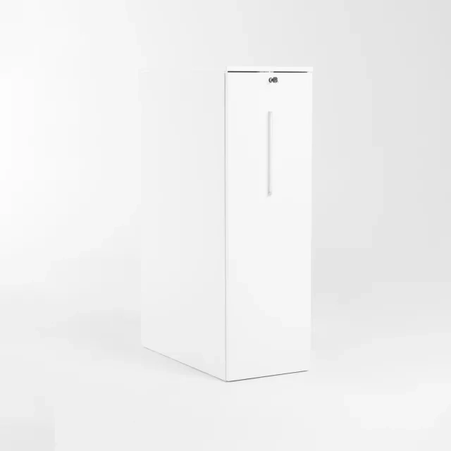Both sides offer easily accessible compartments and locks that protect documents and personal items. The solution supports activity based ways of working and serves as subtle screening between desks. The cabinet is a robust choice for daily use in professional environments.