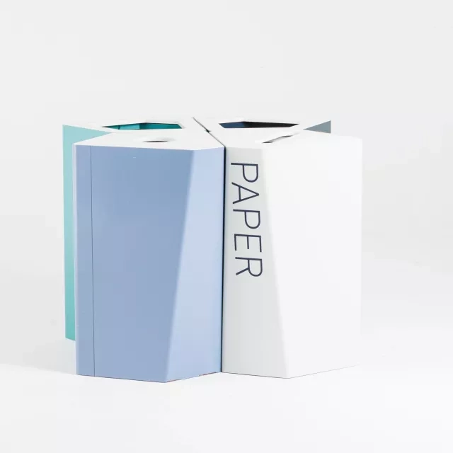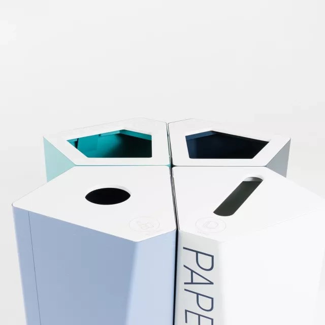 Modellen levereras med lock för Waste som underlättar tydlig källsortering och märkning. Ytan följer NCS-kulör S 8010-R90B-G för enkel kulörsamordning. Använd Kite från Trece som fristående papperskorg eller som del i en samlad återvinningspunkt. Den generösa volymen minskar tömningsbehovet i frekvent använda ytor.